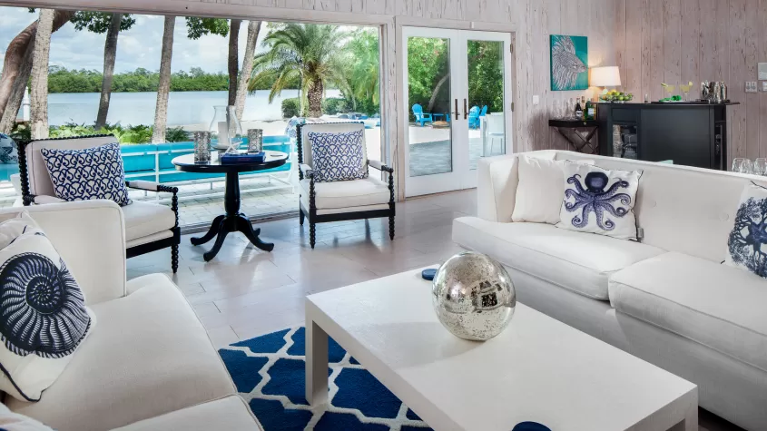 The estate offers unique grounds and comforts for your ideal stay.  Sea Oats’ guests can improve their game on our professional tennis and basketball courts, stroll along the bay on our scenic dock and take in beautiful sunsets via direct access to a private beach. Conveniently located near other major Florida destinations, Sea Oats is Captiva's premier luxury coastal estate.